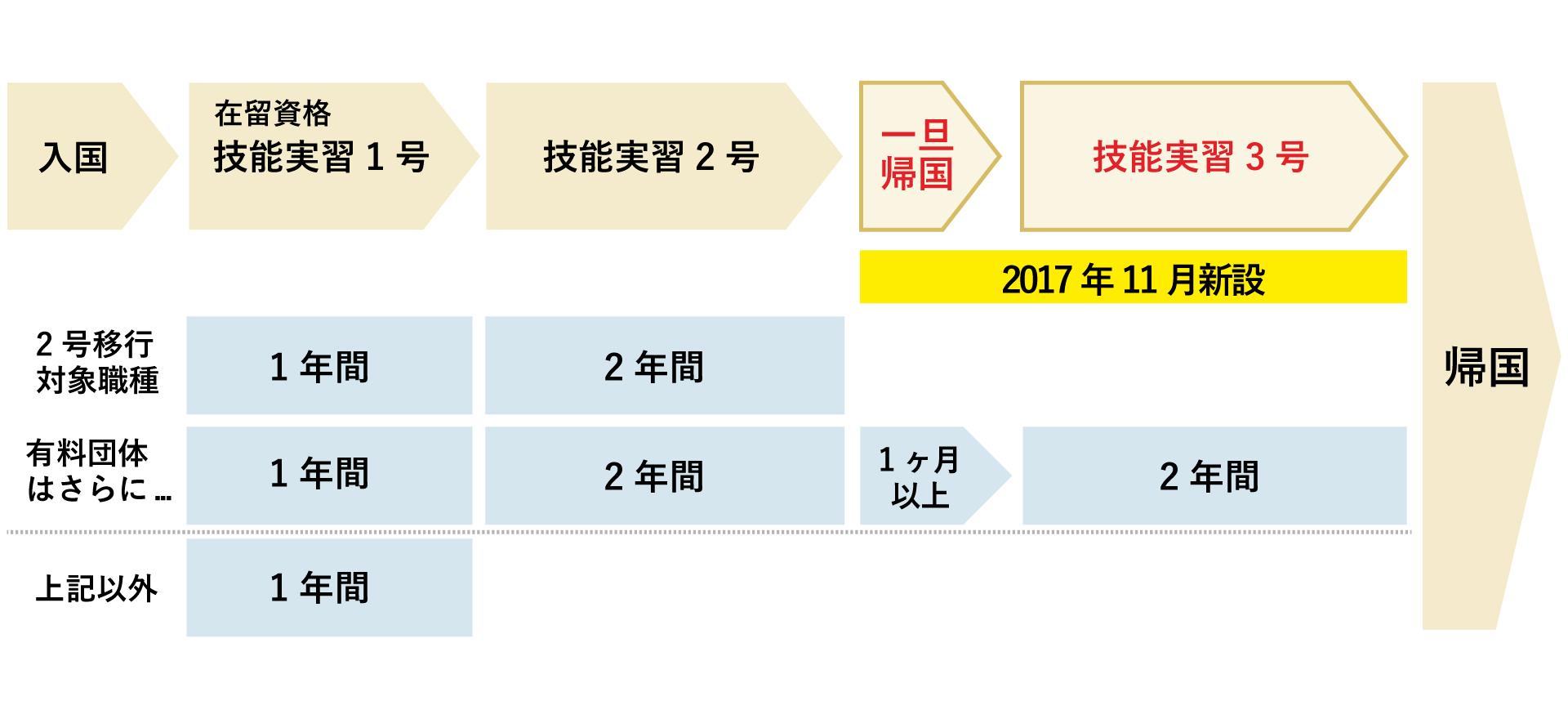 国際社会との調和ある発展を図っていくため、技能、技術又は知識の開発途上国等への移転を図り、開発途上国等の経済発展を担う「人づくり」に協力することを目的としています。